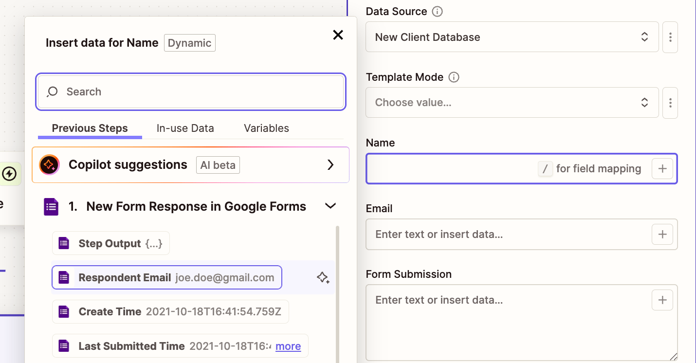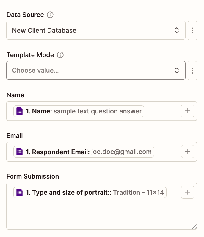In this instance, I’m mapping their name, email, and one of the other form questions.