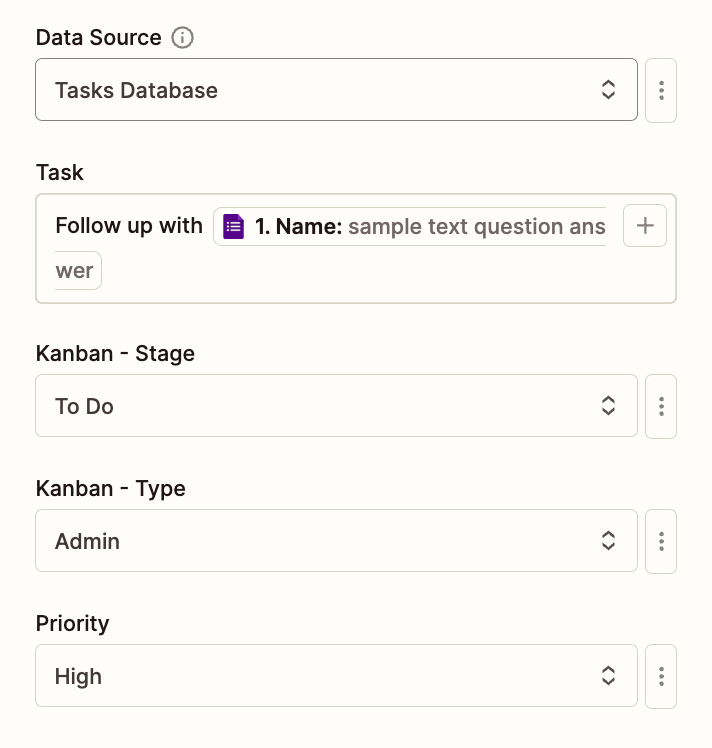 You can then select the output of this field in later actions to create a new task.